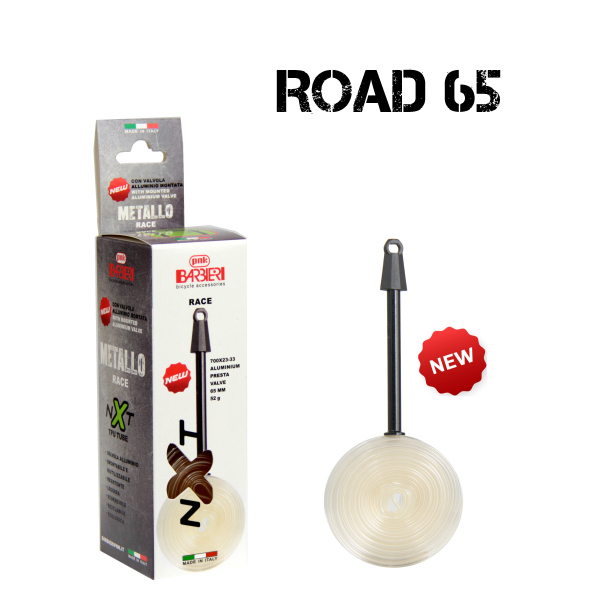 RACE TPU TUBE WITH MOUNTED METAL VALVE PRESTA 65 mm 700X23-33 WEIGHT 52g