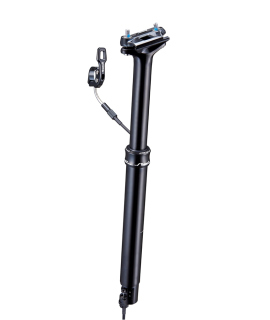 MTB adustable seatpost diameter 30.9x 410mm with internal cable. Seat post with height-adjustable seat post and handlebar lever. Manufactured from 6061-T6 aluminum. Black anodized. Mixed oil-air internal mechanism. Excursion 120mm load 100kg
